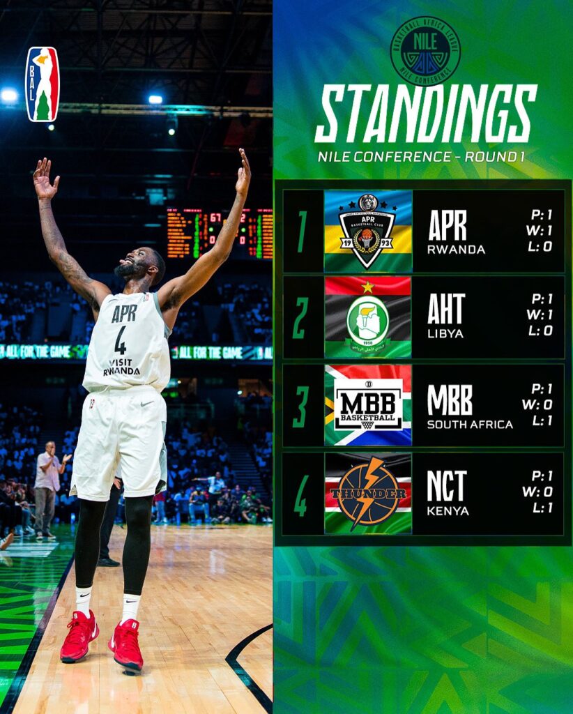 The Basketball Africa League’s Nile Conference tipped off on Saturday May 17, 2025, at BK Arena in Kigali. Four teams in competition, 3 playoff spots to grab: Al Ahli Tripoli, Made in Africa Basketball Club, Nairobi City Thunder, and APR BBC.