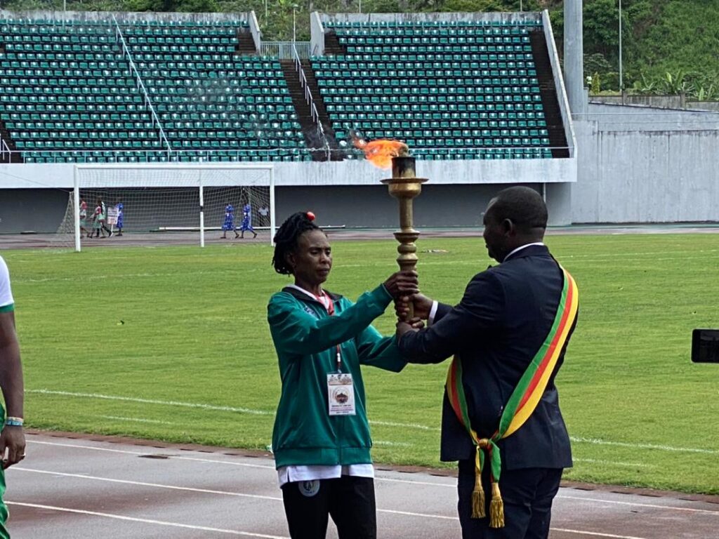 7-time Mount Cameroon race of hope winner, Sara Etongue illuminated the occasion when she lit up the Olympic flames before a nearly filled house in the stadium.