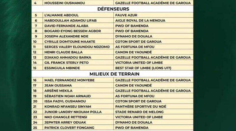 Read MoreIndomitable Lions head coach, David Pagou has made a list of 30 players from the national championships public this Monday,
