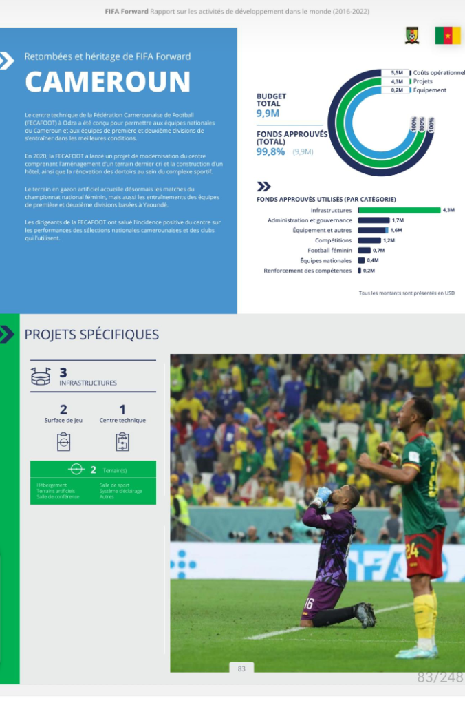 Report cards for FIFA’s development program from 2016 – 2023 has been released, with details of how member associations including 5-time AFCON winners (Cameroon) put its share into use.