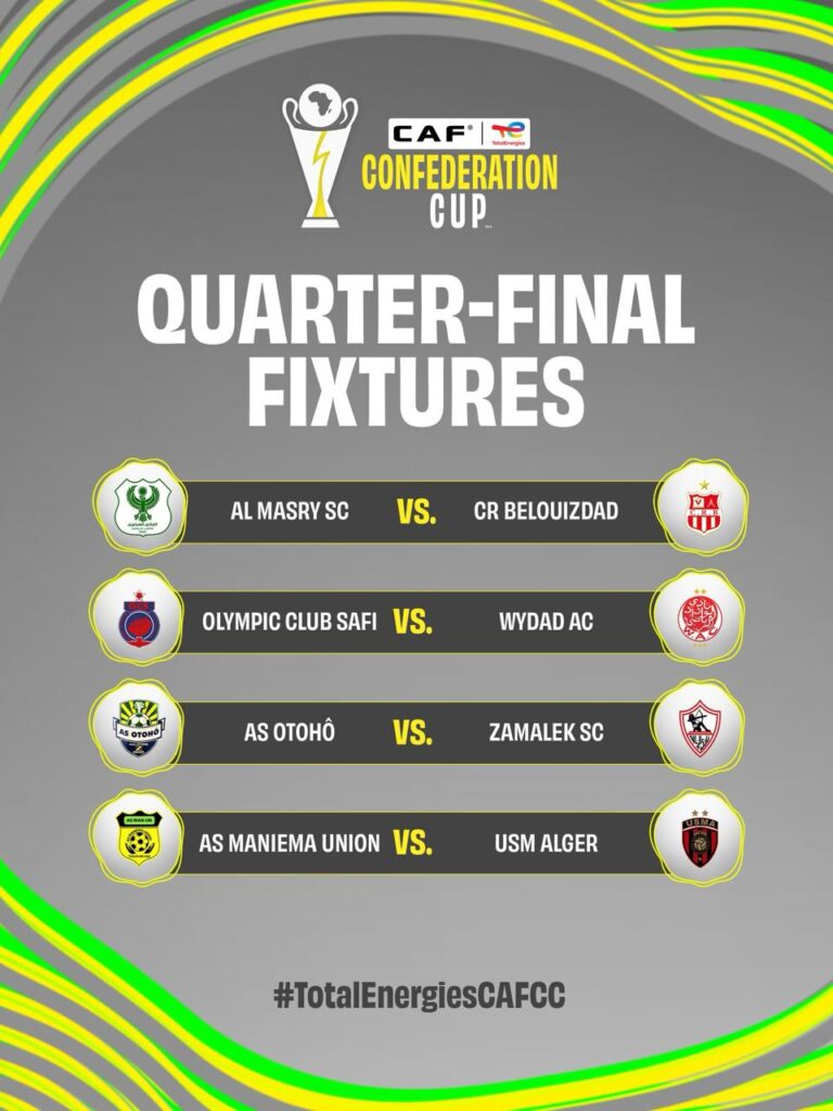 The road to the final is now clearly illuminated. The winner of the clash between AS Maniema Union and USM Alger will move on to Semi-Final 1 to face either Olympic Safi or Wydad AC, setting the stage for a potential heavyweight semi-final between USM Alger and Wydad. On the other side of the bracket, Semi-Final 2 will see the winner of the Al Masry and CR Belouizdad tie face either AS Otohô or Zamalek. This structure creates a very real possibility of an all-Egyptian semi-final, which would guaranteed an Egyptian presence in the grand finale this May.
