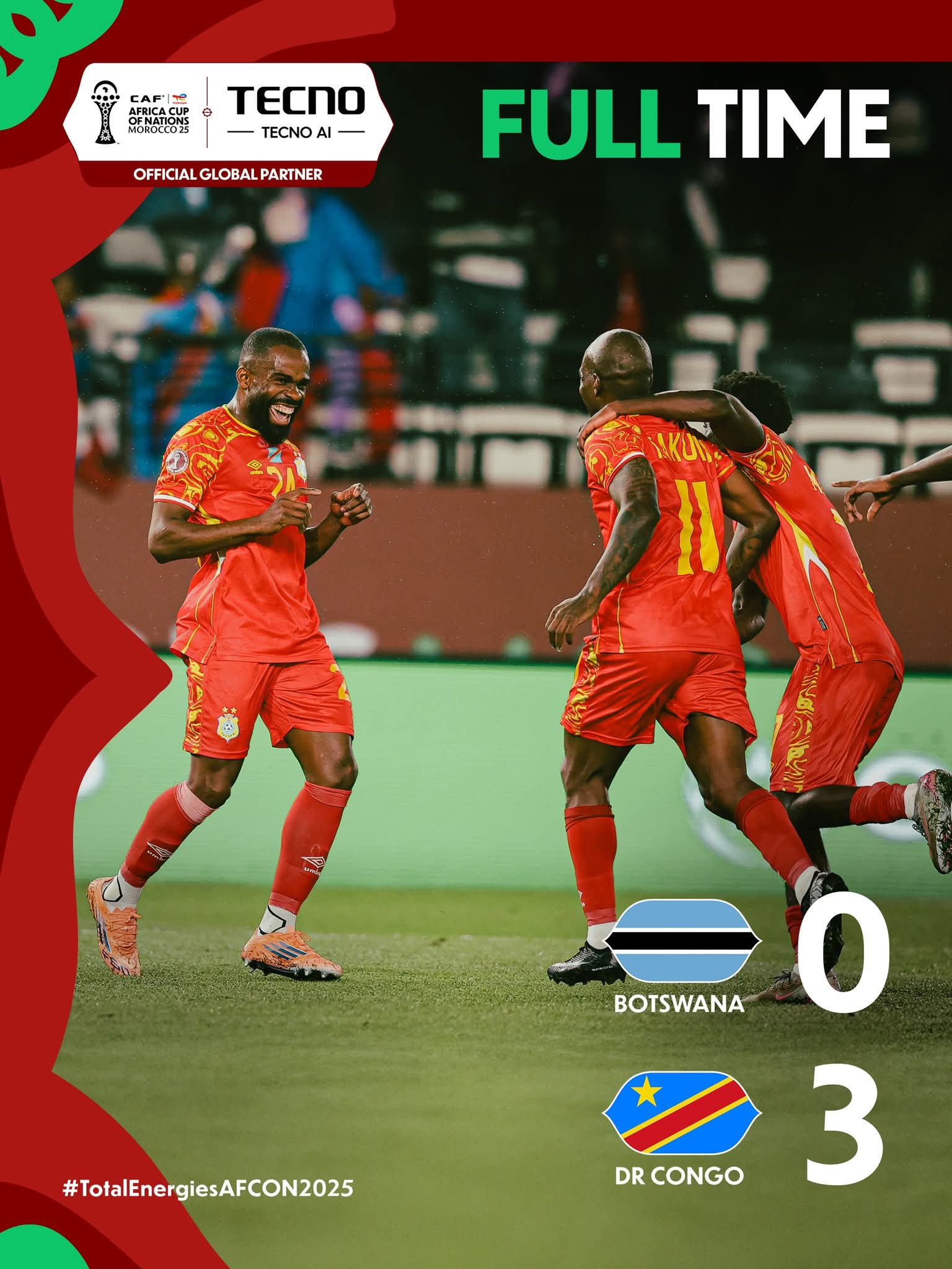 The Democratic Republic of Congo officially secured their place in the knockout stages of AFCON 2025 with a commanding 3-0 victory over Botswana on Tuesday, December 30, 2025.