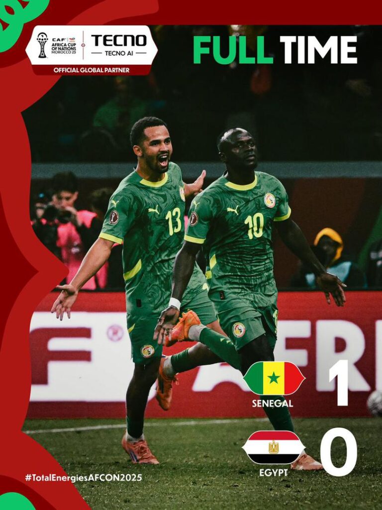 Sadio Mané proved to be the difference-maker, firing Senegal into the AFCON 2025 final with a hard-fought 1-0 victory over a well set-up Egyptian side at the Ibn Batouta Stadium, Tanger.