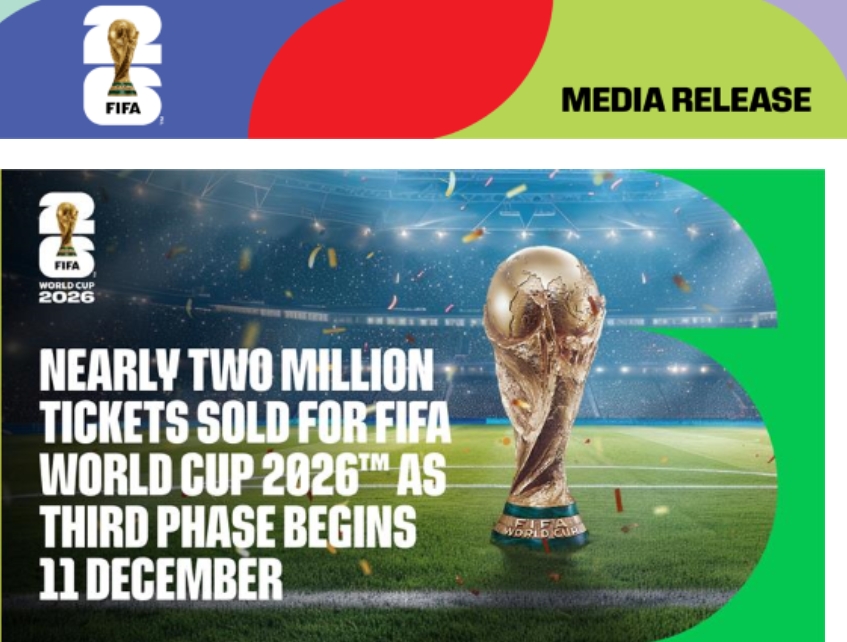 Nearly two million tickets sold for FIFA World Cup 2026™ as third phase begins 11 December