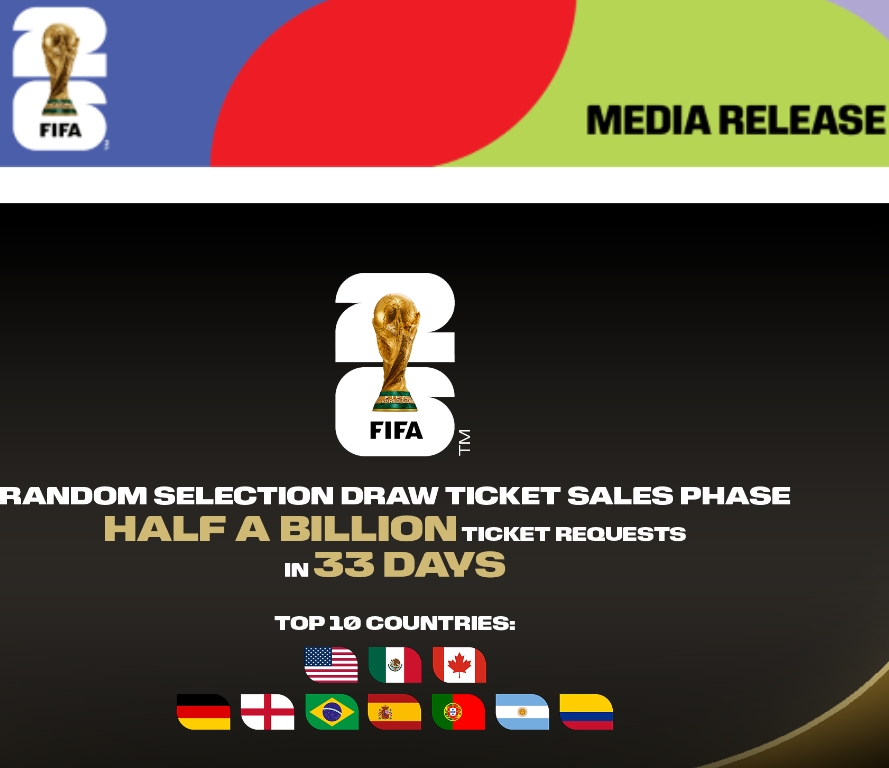 The global excitement for the FIFA World Cup 2026™ has reached unprecedented levels, with more than half a billion ticket requests submitted during the Random Selection Draw ticket sales phase, which ran from Thursday, 11 December 2025 to Tuesday, 13 January 2026.