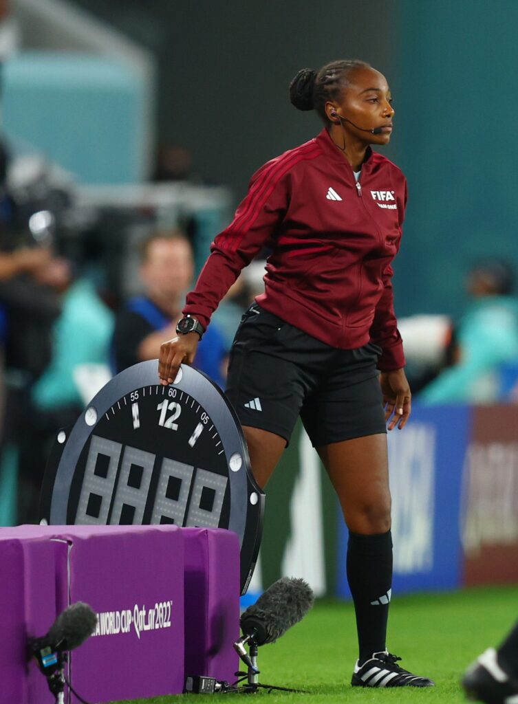 The Rwandan did alright in her position as fourth official for the second match of Group D pitting France against Australia – which ended 4-1 for Les Bleus.
