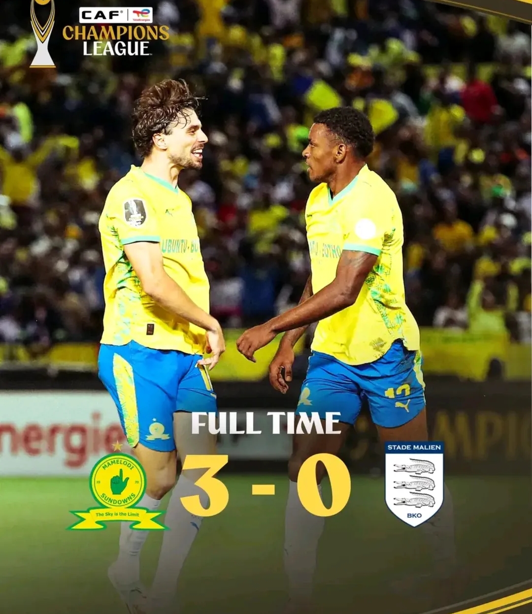 Mamelodi Sundowns took a significant step toward the semi-finals of the CAF Champions League after securing a convincing 3–0 victory over Stade Malien in the first leg of their quarterfinal clash.