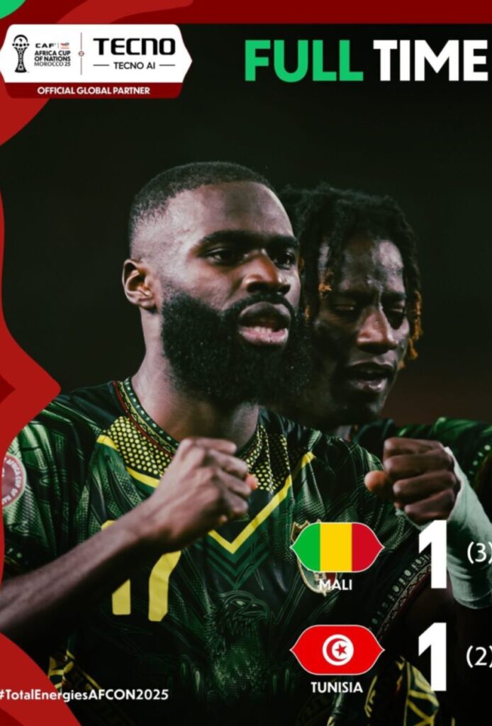 In a match that defined the word “resilience,” Mali overcame an early red card and a late deficit to defeat Tunisia 3-2 on penalties following a 1-1 draw through extra time. It was a night of tactical discipline, heartbreak, and eventual euphoria for the Eagles.